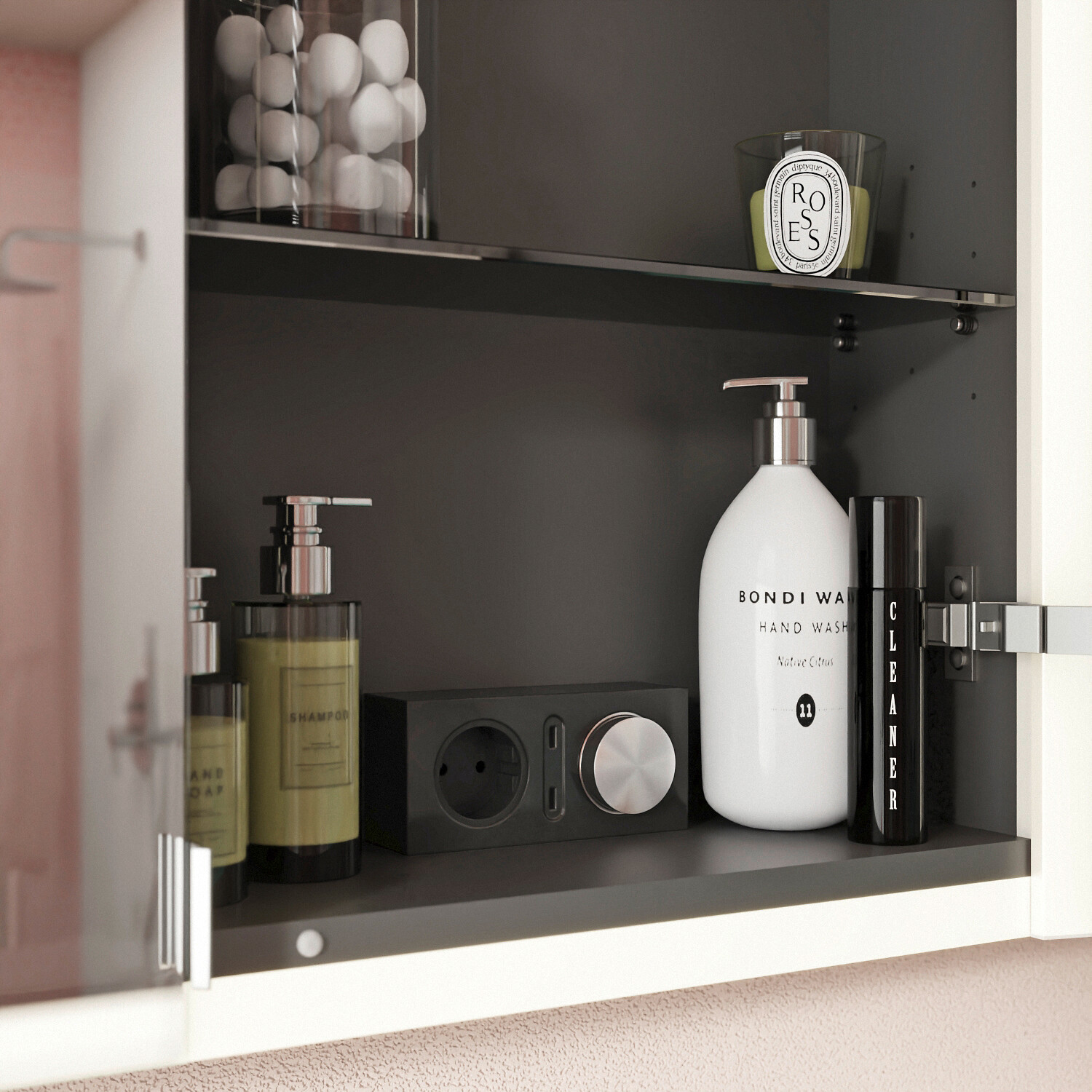 Außerdem kann bei dem in sieben Breiten von 60 bis 1.60 cm verfügbaren Spiegelschrank rl20 zwischen einer Aufputzvariante (mit verspiegeltem Korpus) und einer Variante zum Wandeinbau gewählt werden. Da die umlaufenden Leuchten den Wandausschnitt abdecken, wird der Montageaufwand der Einbauvariante deutlich verringert. Ausgestattet mit einer neuen E-Box mit Drehschalter zum Dimmen und zur Lichttemperatursteuerung, Raumschaltungsfähigkeit und USB-C-Anschlüssen, einer über die gesamte Breite gehenden Waschtischbeleuchtung sowie einer in vielen Details wie etwa den Rauchglas-Ablagen sehr hochwertigen Innenausstattung bietet der Spiegelschrank rl20 ein hervorragendes Preis-Leistungs-Verhältnis.